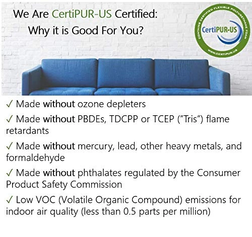 - ECO-FRIENDLY – Our foam is certified by CertiPUR-US meaning that it meets rigorous standards for emissions, content, performance, and durability. It is also made without any ozone depleters such as PBDEs, TDCPP, or TCEP, and is MADE IN THE USA