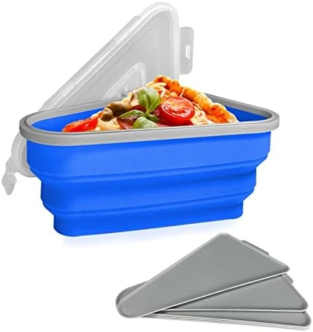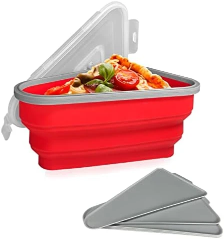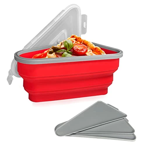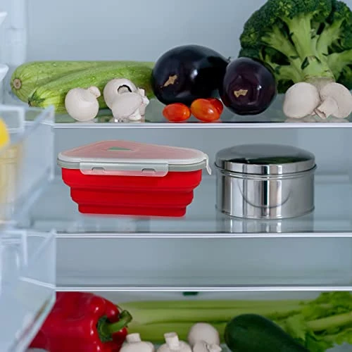 - KEEP PIZZA FRESH: The pizza storage container collapsiblefour-sided snap-on lid vacuum seals the food, keeping your pizza slices fresh longer without mixing with the flavors of other foods in the refrigerator. The lid is fitted with adjustable vents to reduce condensation and facilitate microwave heating.