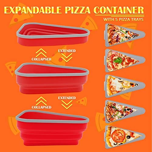 - REUSABLE PIZZA TRAY: The pizza organizer comes with 5 small trays, these trays prevent pizza from sticking together when storing pizza, when you want to microwave a single slice, you can place the pizza on the tray to reheat, Enjoy delicious food anytime!