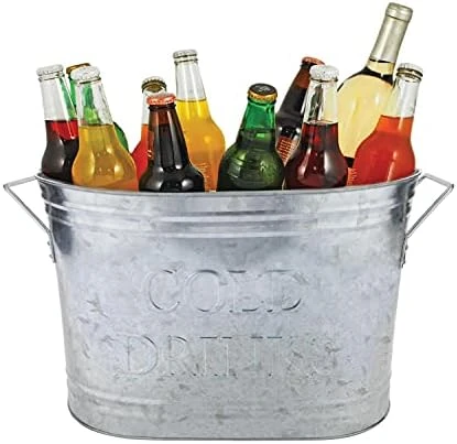 - STURDY METAL HANDLES – The large capacity of this ice bin makes this drink bucket the perfect metal tub for throwing parties. Perfect as a housewarming gift or wedding gift, fill it with wine bottles and treats, and try it out as a bridal shower basket!