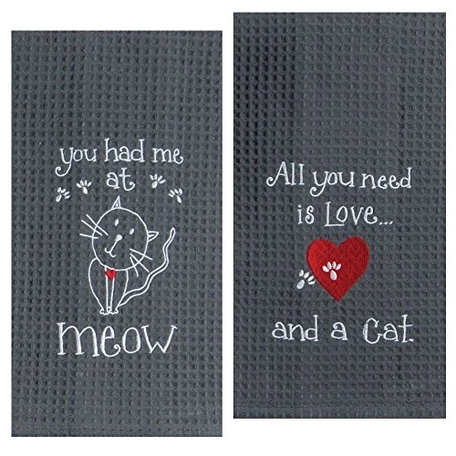 - “All you need is Love and a cat” towel with a large red heart and paw prints