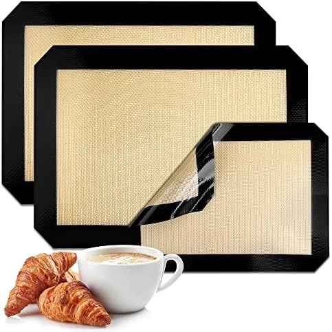 - [Multipurpose Set] – Set of 3, including 2 Half Sheets Mats (16 1/2″ x 11 5/8″) + 1 Quarter Baking Sheets, fit all standard baking pan sizes. Cut to fit any size saucepan or grill. (Please Note: do not place the mat near an open flame.)