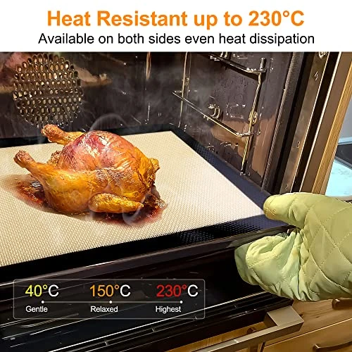 - [Sturdy and Easy to Store] – We’ve added woven fiberglass inside to strengthen the cushion. It won’t melt in the oven and won’t be damaged or deformed even if torn. This silicone dough mat for baking is flexible enough to be stored flat or rolled up without wrinkling or getting crease lines.