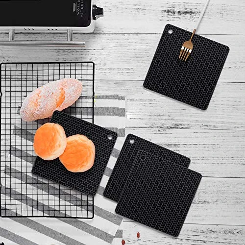 - 【MULTI-FUNCTION】Unique honeycomb pattern decreases weight, evenly distributes heat to better protect your hands & provide insulation as well as enhances good grip.It should serves as a potholder, trivet, spoon rest, hot pad, or jar lid gripper.