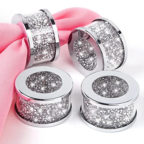 - 💎【Crushed Diamond Design】Napkin Holder Decorative Napkin Ring, each cylinder dimension: diameter 2 x tall 1.97 inch, center hole diameter is 1.38inch width. Pack of 4 pieces in gift box.eter is 1.38inch width. Pack of 4 pieces in gift box.