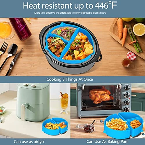 - 【Multiple Uses】Our silicone dividers liners can be folded,easy storage. not only for slow cooker, but also for air fryer and oven.novative design will make cooking a breeze, This 3 pack of silicon crockpot liners is much more cost effective than the disposable plastic liners.