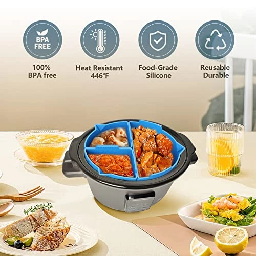 - 【BPA-FREE Silicone】Our Slow cooker liners divider is made of food-grade silicone, which is a durable, safe, and eco-friendly material.heat resistant up to 446 ℉, more safe.The product is very sturdy,Reusable.(There will be a little smell when receiving,Don’t worry, it will disappear after cleaning and drying).