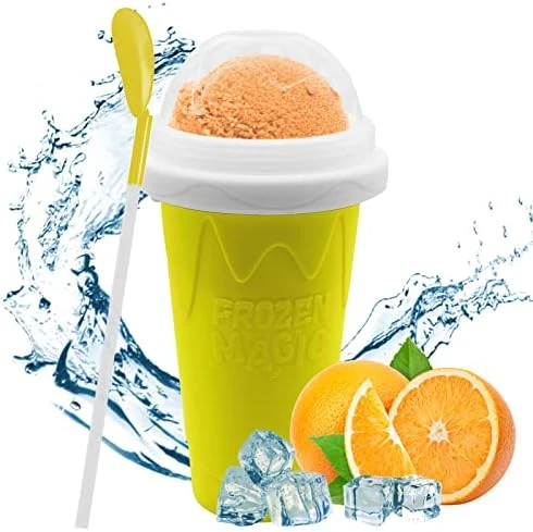 - FOOD GRADE MATERIAL: Our Magic Slushy maker cup is 100% safe with all of its parts made from non-toxic food grade material. The body is made from food-grade silicone, which is safe and environment friendly, soft and non-deformable, Also, it’s washable and reusable