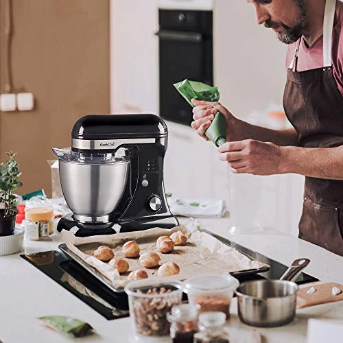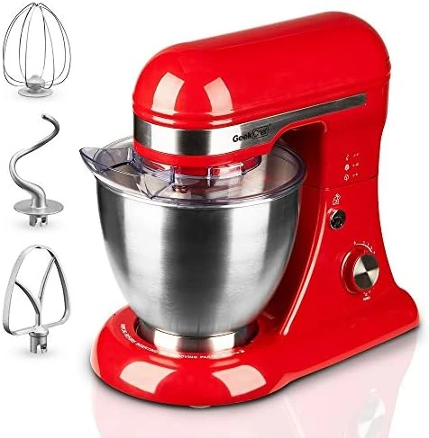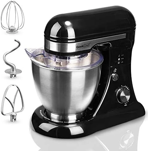 - MULTIPLE ATTACHMENT SET: Geek Chef stand mixer comes with four accessories: whisk, beater, dough hook and pouring shield.The pouring shield with pour spout helps add ingredients without making a mess.