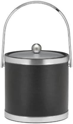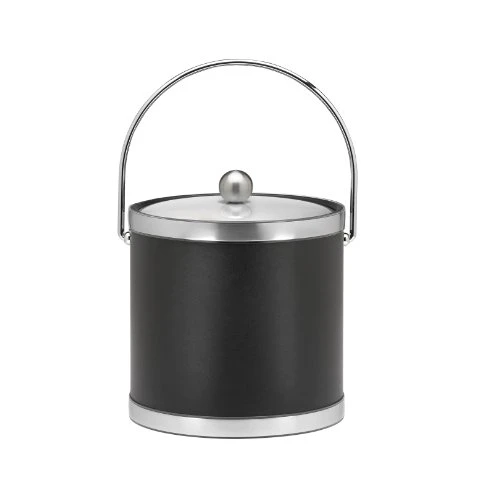 Sophisticates Brushed Chrome Ice Bucket With Bale Handle And Metal Cover, Black – 3 Quart