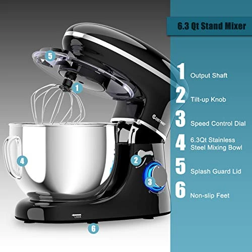 - 🐣【6.3 Qt Large Capacity Bowl with a Comfortable Handle:】Designed with a large stainless steel bowl with a maximum capacity of 6.3quarts, it perfectly meets all your kitchen needs. You can make full use of it when family or friends meetings come around. A comfortable handle makes it easier to pour out the ingredients or to scoop them out.