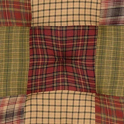 Tea Cabin Chair Pad Patchwork Log Cabin Country Rustic Lodge Design, Moss Green And Deep Red