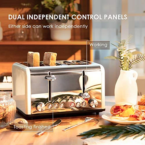 - 1.5″ Extra-Wide Slots: Wide enough with self-centering guides, perfect for thick and thin slices. Simple 4 slice toaster, twice as fast speed, the whole family breakfast just gets easier now