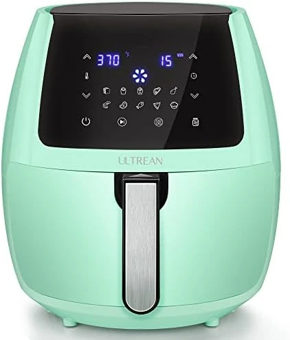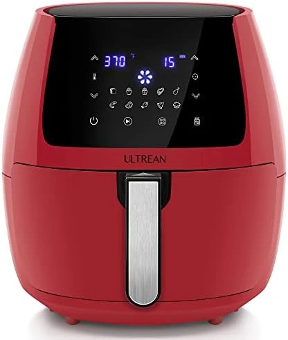 - Contemporary & Sleek Design. Ultrean air fryer with matte finish on the top which reduces fingerprints and scratches on the surface; It has 5.8 quarts (5.5L) huge capacity, which can serve food for 3~5 persons. It comes with a fabulous bonus cookbook with delicious & easy recipe for your daily meal.