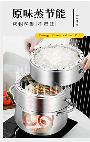 WAZTT Three Layer Thickened Steamer Pot Stainless Steel Large Capacity Steam Boilers Household Cooking Cookware (Color : 28CM Two Layers)