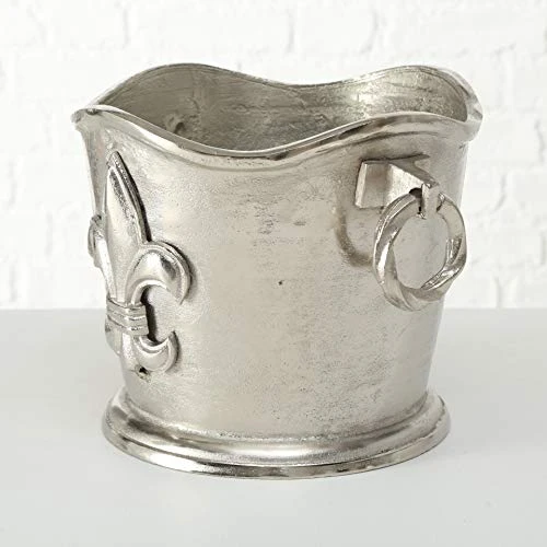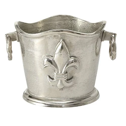 This splendid multi-bottle champagne cooler is ready to chill beverages, wines and bubbly and more in exquisite style during any soiree. Inspired by chateau-style entertaining, a unique shape with scalloped rim, molded edges, beveled bottom and ringed loop handle details make a decidedly posh and pedigreed statement. Embellished with the Fleur di Lis crest at center, this impressive hand-cast piece is made of durable silver aluminum nickle. As each piece is made by hand, delightful variations made by the maker will appear on the surface. Each piece is slightly different and no two are exactly alike. Well sized, this piece gracefully accommodates up to 6 standard sized wine bottles and measures as follows: 14 1/4 L x 11 1/2 W x 9 3/4 H inches. Old world craft finish breaths age with a beautiful shine. A cinch to take care of, wash in warm soapy water, rinse and towel dry. Visually impressive, let this over-sized beverage cooler be the centerpiece of your bar. A welcome gift, always, the Luxury Champagne Bucket is brings allure to any event and is perfect to celebrate holidays, birthdays, weddings and many more. Welcome to the product line of Whole House Worlds. The New York based company offers high quality, stylish products for every room in the house, and beyond. From the kitchen, to the living room, to the bedroom, dining room, home office, closet and garden: Our criteria are comfort, quality, style and value.
