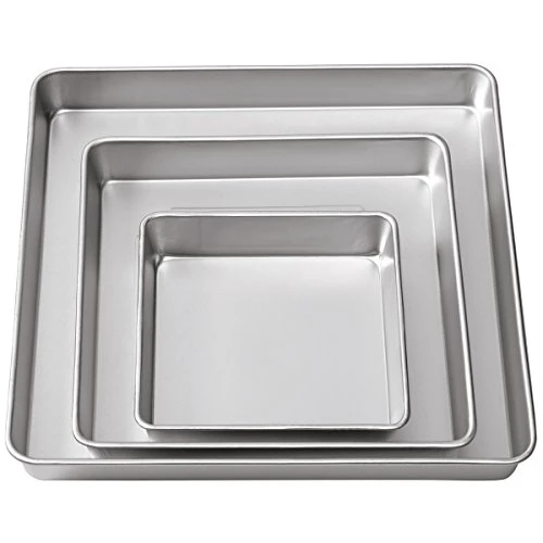 - Set includes 8 inch, 12 inch, 16 inch pans; each pan 2 inches deep
