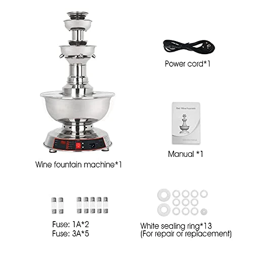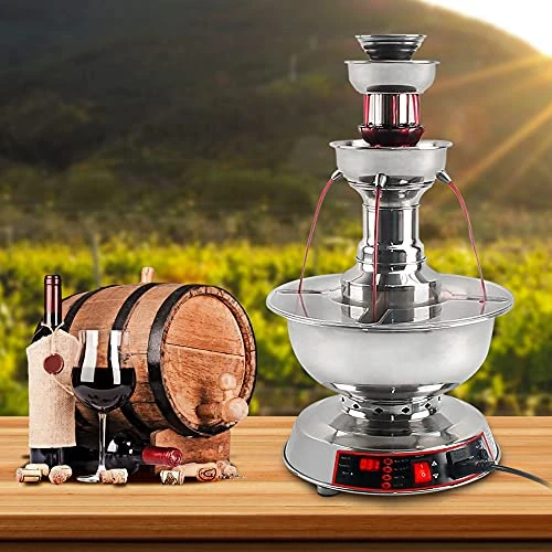 - 3 Layers Design: 3 Tier Stainless Steel Fondue Heat & Motor Controls, It has features with separate heat and motor controls, keep wine warm when fountain not in use,The champagne fountain catering equipment temperature can be adjusted from 0~100℃.