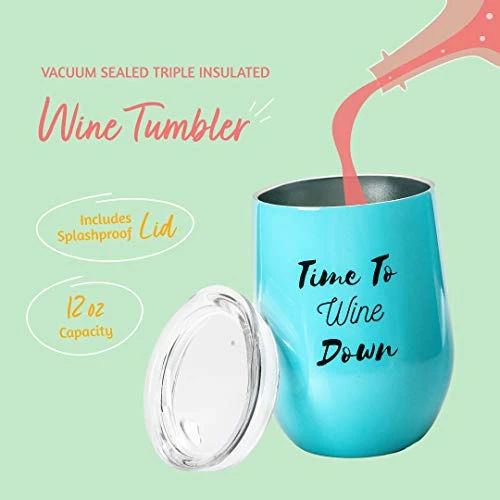 - 8 UNIQUE GIFTS – Including a triple insulated wine tumbler with lid, 2 Luxurious bath bombs, 8 adorable wine charms, super comfy socks, 2 silicone flower wine stoppers, 1 ergonomic corkscrew in pink, and a “Cheers To You” greetings card.