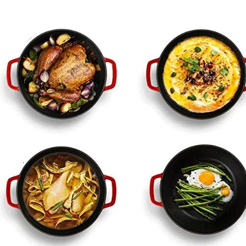 - ★ Content: Featured cast iron casserole, steamer, size: pot body diameter: 24CM, with cover height: 15.5CM, weight: 5kg, capacity: 4L, color: red