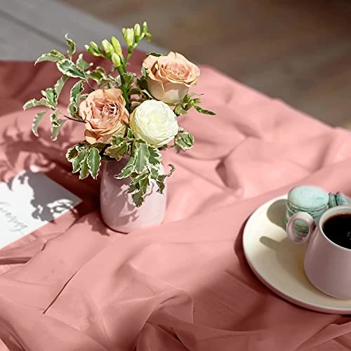 YAWALL Chiffon Table Runner For Wedding Decorations – Dusty Rose Bridal Baby Shower Party Decor Rustic Boho Runners 10ft
