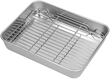 - Grill: The stainless steel frame with four raised legs fits perfectly with the pan, keeping the meat above the and releasing it easily, and you can enjoy more delicious food.
