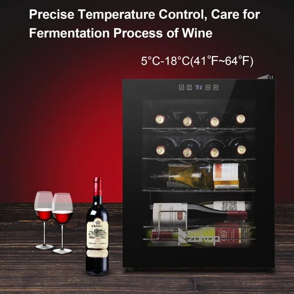ZOKOP JC-48 115V 85W 1.7cu.ft/49l Electronic Wine Cabinet Cold Rolled Sheet Transparent Glass Door / 16Bottle With Display Black